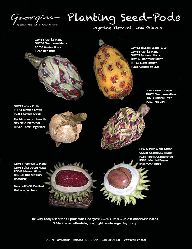 No matter how you use them, you'll get color (or texture, or both!) results new and different from what you've seen before with your glazes. Check out the Pigment Plates below for just a handful of the possibilities. |