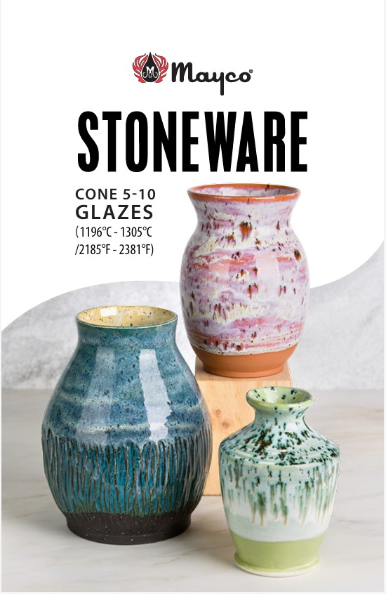 Mayco formulated their new line of stoneware glazes for mid-range (cone 4-6) and highfire (cone 9-10) clay bodies. Fired finishes include gloss, variegating gloss and matte. These glazes provide consistent and reliable results, and do not run during the firing process. They're friendly for both you and your kiln! Try them at various temperatures and in both oxidation and reduction for great color looks.