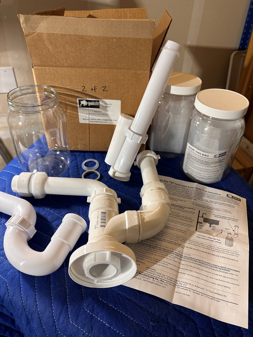 New, never used. Trap that clay before it clogs your drain! The Buffalo Trap-Eze BT Bottle Sink Trap kit with 2 additional bottles (3 bottles total). There is additional piping, in case it comes in handy. Contact Kallie at kallie.buckmaster@gmail.com. |
