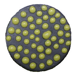 Best results when applied thick. The glaze has been applied with a squeeze tube for the beaded texture. You can also apply the glaze with a 1cm thickness for a crackle texture. Best if applied on an underglaze. If applied to an active, melting glaze, gloop will ooze and will lose its beaded shape. Sold in Pints only.